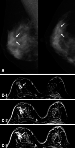 This condition is caused by an overgrowth of tissue in the breast lobules. As with radial scars, sclerosing adenosis is generally found on mammogram, as the person will be asymptomatic. It resembles cancer on mammogram and will require further investigation. No treatment is required, but the condition is associated with an increased risk for developing breast cancer.
