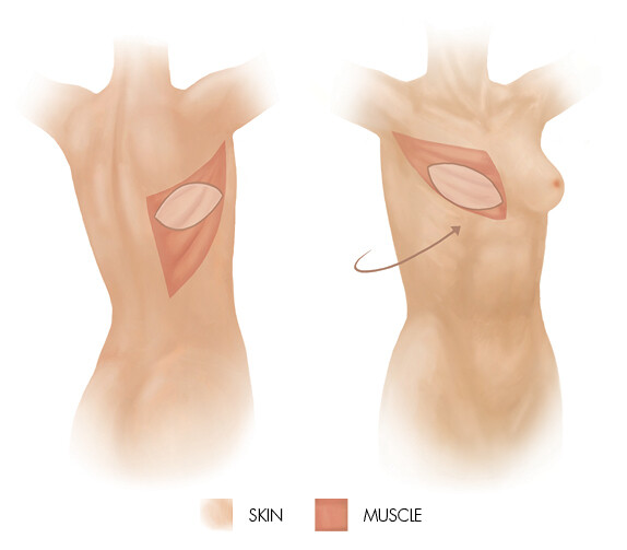 Breast reconstruction with pedicled flaps involves the transfer of skin, fat and muscle to the breast area on a pedicle of muscle that retains the blood supply.
