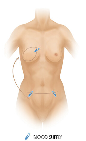 This procedure completely detaches the skin, fat and some blood vessels from the donor site and, once transferred to the breast area, the blood supply is re-attached through microsurgery.
