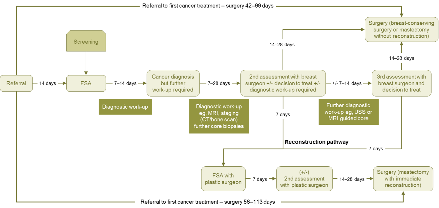 The following pathways are taken from Standards of Service Provision for Breast Cancer Patients in New Zealand.